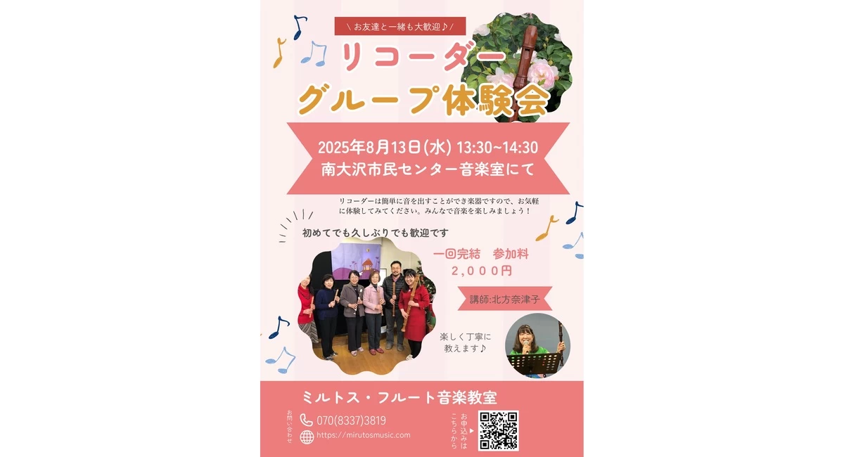 フルート、フラウト・トラヴェルソ…3か月で¥5,000(延長可能)