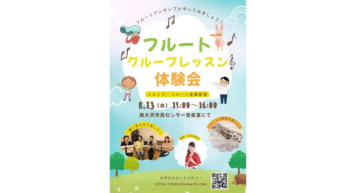 またミルトス・フルート音楽教室のフルート講師は、長年、学校で中高生のフルート指導を続けています。また小学校での音楽授業、特別支援学級の音楽指導経験も豊かで、こどもの指導についてはベテランです。